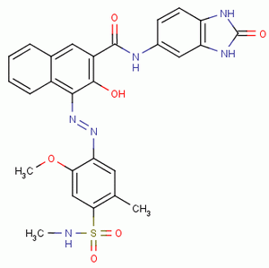 Alias:2-Naphthalenecarboxamide, N- (2,3-dihydro-2-oxo-1H-benzimidazol-5-yl) -3-hydroxy-4 - ((2-methoxy-5-methyl-4 - ((methylamino) sulfonyl) fenil) azo) -; 2-Naphthalenecarboxamide, N- (2,3-dihydro-2-oxo-1H-benzimidazol-5-yl) -3-hydroxy-4- (2- (2-methoxy-5-methyl-4 - ((methylamino)) sulfonil) fenil) diazenil) -; N- (2,3-Dihydro-2-oxo-1H-benzimidazol-5-yl) -3-hidroksi-4 - ((2-metoksi-5-metil-4 - ((metilamino) sulfonil) fenil) azo) naphthalene-2-carboxamide; 12516; Deep Scarlet; Carmine Permanen HF4C; Peony Red [HO]; ; (4Z) -4- {2- [2-methoxy-5-methyl-4- (methylsulfamoyl) phenyl] hydrazinylidene} -3-oxo-N- (2-oxo-2,3-dihydro-1H-benzimidazol-5 -yl) -3,4-dihydronaphthalene-2-carboxamide